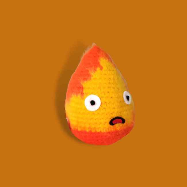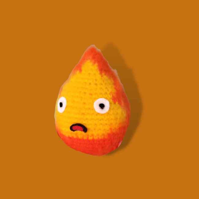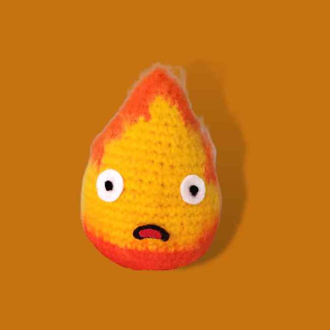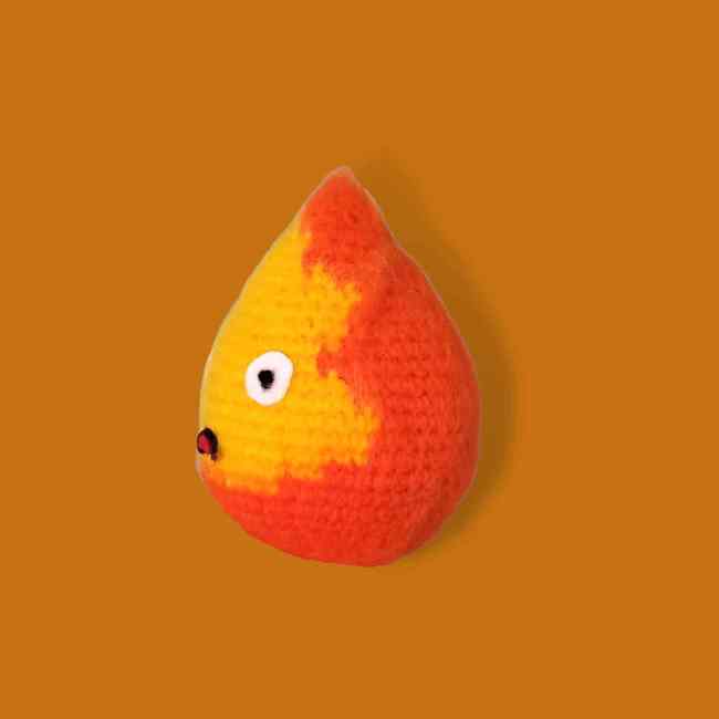 If you're a fan of the Studio Ghibli film Howl's Moving Castle, then you need this free crochet pattern (log not included). Crochet Calcifer and have a cute amigurumi of a fire demon with a big heart! Be careful he doesn't curse all your bacon to burn Calcifer from Howl's Moving Castle is a no-sew crochet pattern. The Calcifer amigurumi is worked as one piece. A stitch marker and row counter are highly recommended. This pattern switches between yarn colors frequently and crocheting like you would a tapestry pattern may be helpful. Calcifer measure 5" tall by 4" wide at the base.