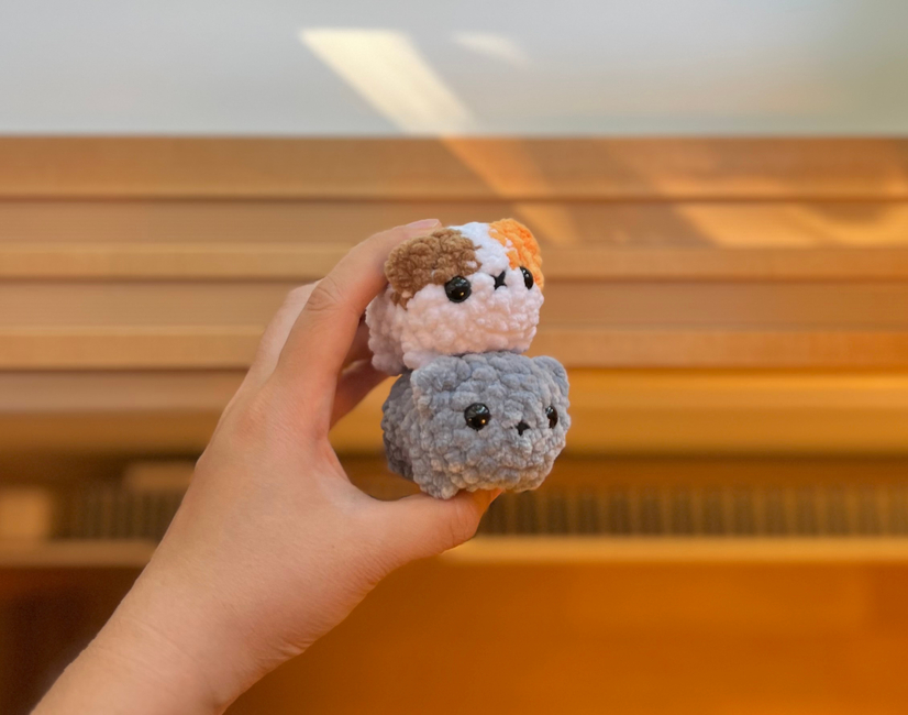This is a no-sew crochet pattern for making a mini loaf cat! This pattern includes instructions for both a solid-colored and calico cat.