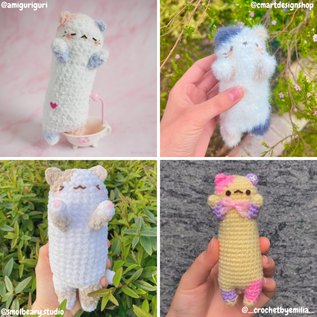 A cute and advvanced beginner crochet pattern to make your own Calico Nyanko long kitty plushie. The kitty works up fairly quickly, since it's small in size. However, some sewing is required. You can easily customise the length of your kitty, make it as long or short as you like! :)