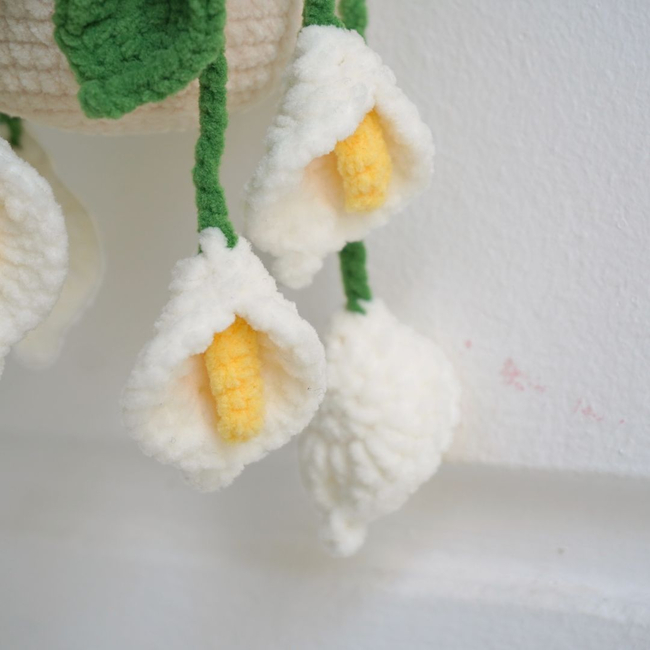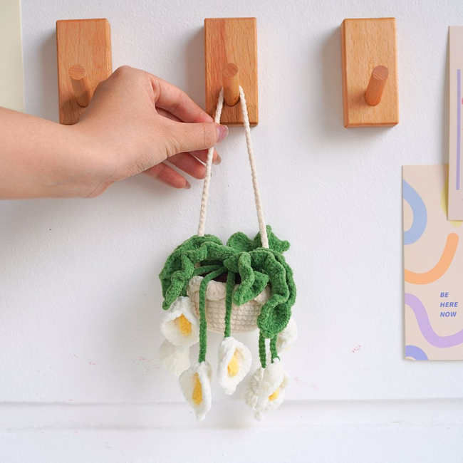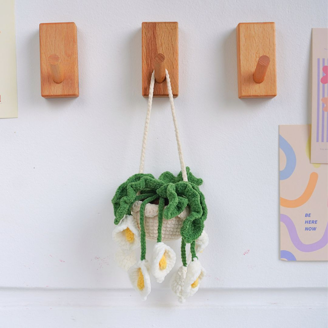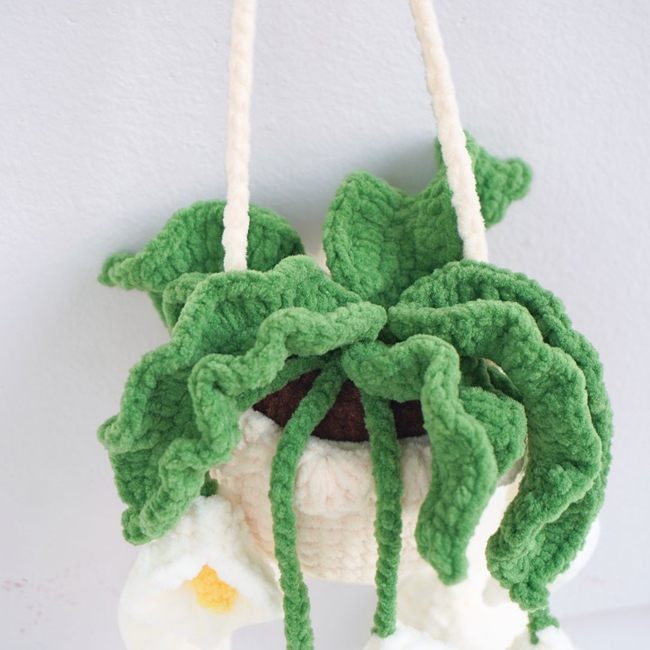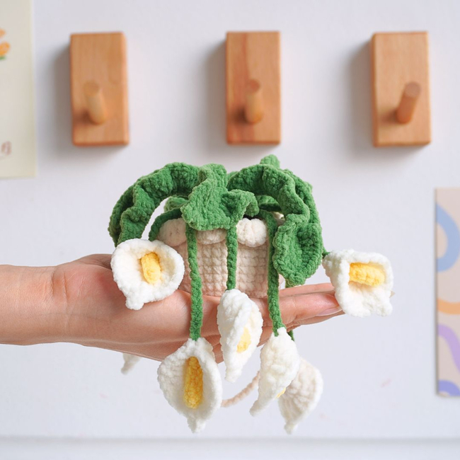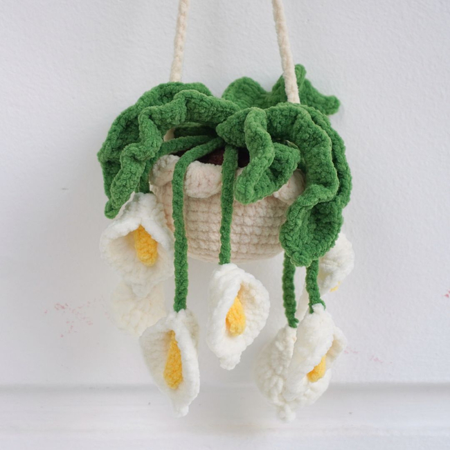 Unleash your creativity with the Calla Lily Basket Crochet Pattern PDF pattern! This pattern creates a hanging calla lily arrangement, complete with green leaves and white blooms with yellow centers. The flowers cascade gracefully from the crochet basket, which can be hung to add a touch of botanical beauty.