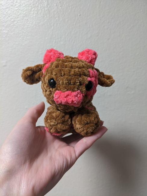 Just a sweet little cow, here to bring some calm to your day. Calming cow works up quite quickly and big using chunky yarn. I hope to see your finished cows! If you have any questions or just want to share a picture you can find me on Instagram, @squeakycrochet, or here on Ribblr!