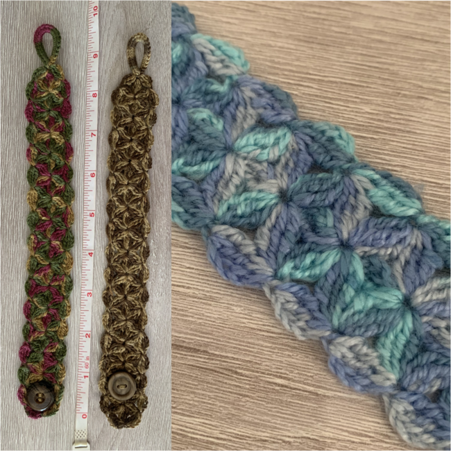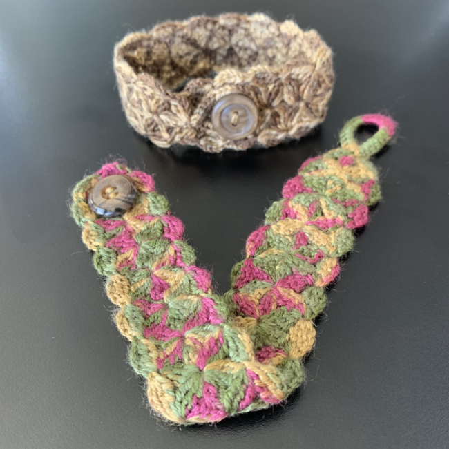 I suggest this easy to intermediate pattern to crocheters to make gorgeous bracelets, cuffs and also belts. This bracelet/cuff can be crocheted with one solid color and also perfect with variegated thread. It's a must-have pattern in the library of any crocheter!