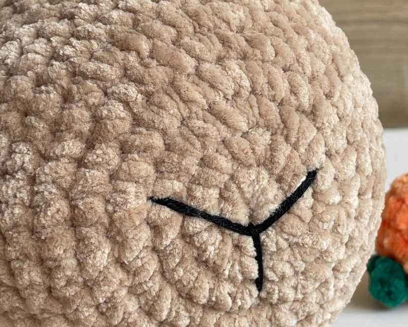 - Super bulky plush yarn (Himalaya Dophin Baby 120m/100g (131yds/100g) or an analog: ~ 1 skein beige color 80317, a little orange and green yarn for tangerine;