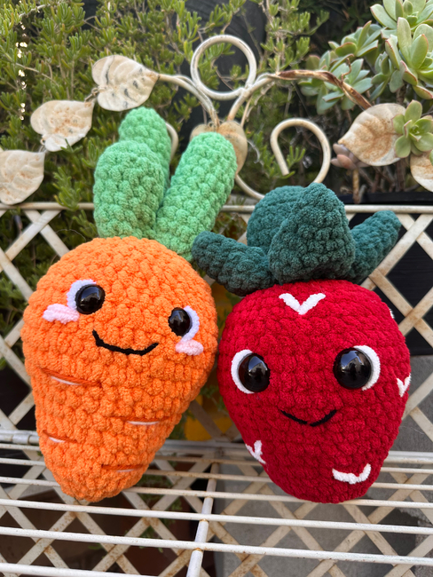 Create your own Carolina the Carrot (and a strawberry friend!) with this fun and easy-to-follow crochet pattern. Perfect for gifts, market prep, or your personal plushie collection!