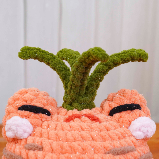 The Carrot Frog Crochet Pattern pattern makes a Amigurumi. It is a Intermediate Crochet pattern.
