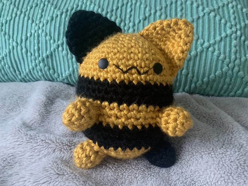 Cat bee is a Beginner Crochet pattern designed by Yarn_cat for making an Amigurumi. A cat mixed with a bee.This pattern is pretty easy to make.This is my second pattern I made so I hope you like it. I used a 8mm hook and super bulky lion brand yarn, but any yarn and corresponding hook size should work well.Enjoy!