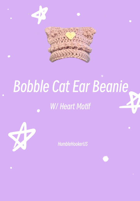 Bobble Cat Ear Beanie w/ Heart Motif
