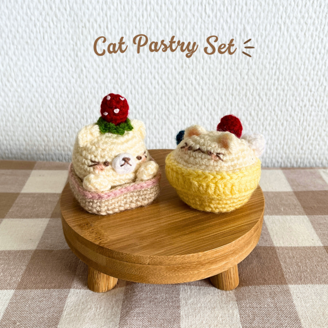 This bundle includes my Strawberry Cat Cake & Fruity Cat Tart Pattern.