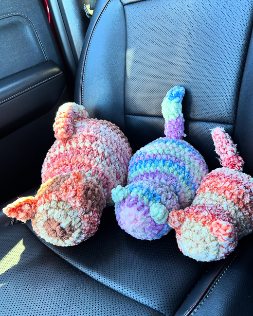 This includes Bella the small cat, Flora the medium cat, Callie the large cat and a key chain cat.