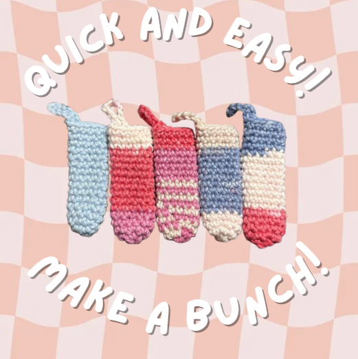 This is a cute and easy chapstick holder pattern. They take no time at all and I whip up a bunch in a few hours. Quick and easy market prep and great last-minute gifts. Happy crocheting!