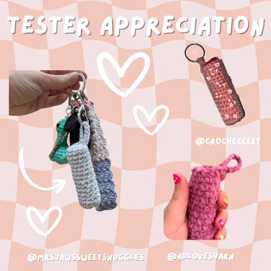 CrochetByElla designed the Chapstick Holder pattern. Find more of their patterns on their Ribblr shop page.