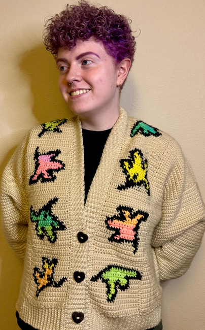 EllisIslandCrochet designed the Charlie Spring Cardigan pattern. Find more of their patterns on their Ribblr shop page.