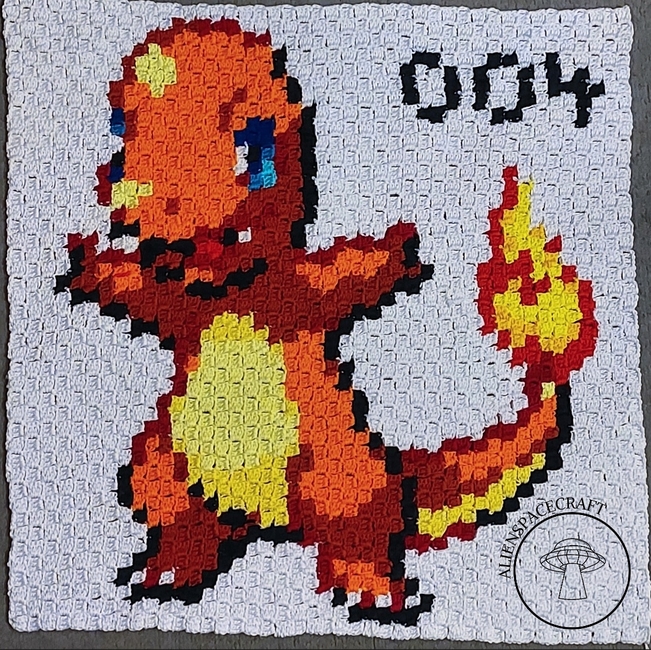 This C2C can either be coupled with the other Pokemon starter squares to make a blanket, or on its own with a large hook and weight yarn to make a graphgan, cushion, or wall hanging.