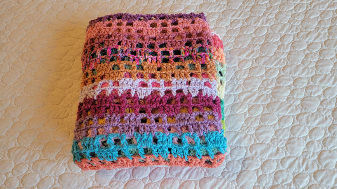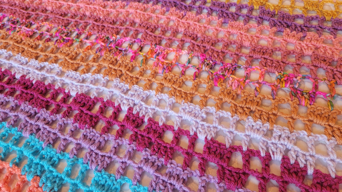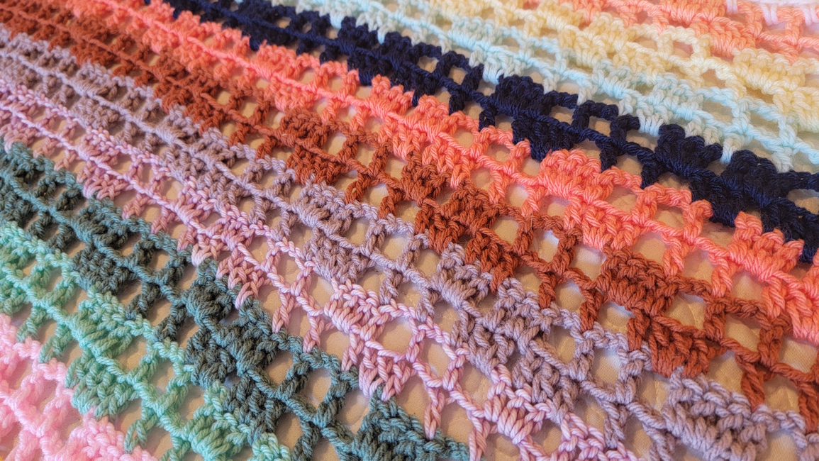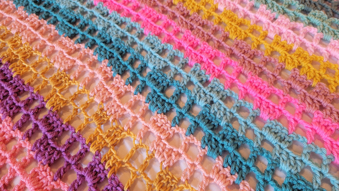 This pattern shows you how to create a crochet striped filet blanket, easily made to the size you want! Also can be made in any color(s) you want. All of my patterns can be made with different sized yarn, you would just need to match your yarn size and hook size to adjust. If you have any questions about this pattern, please contact me!