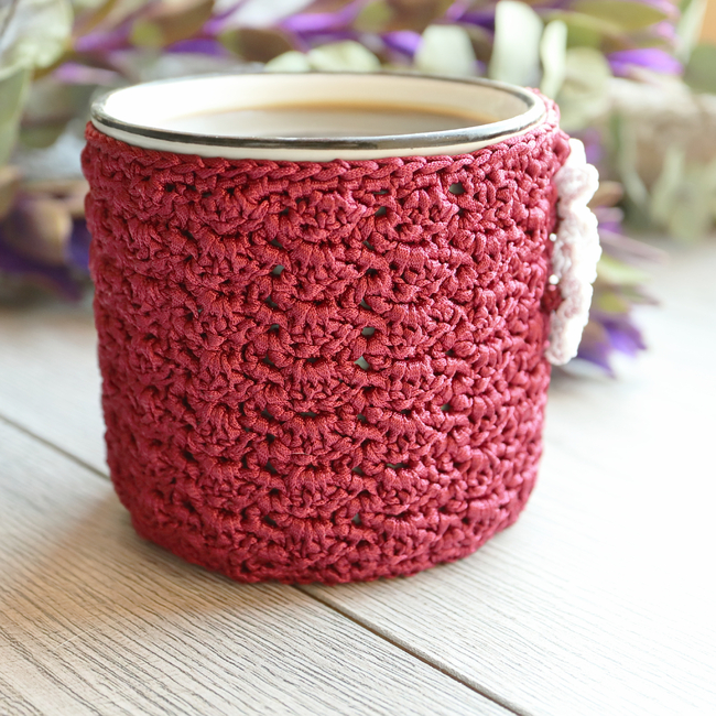 The Cherry Blossom Mug Cozy Crochet Pattern pattern makes a Home Decor. It is a Beginner Crochet pattern.