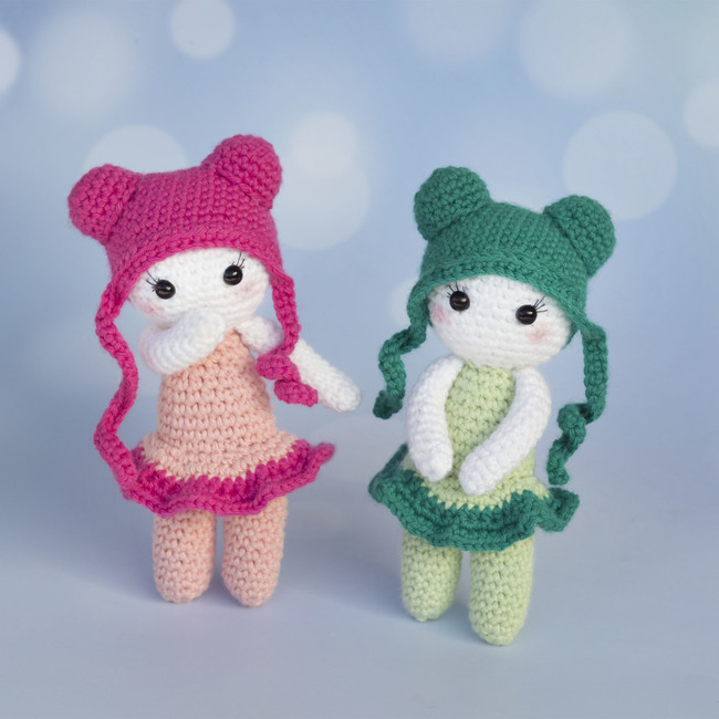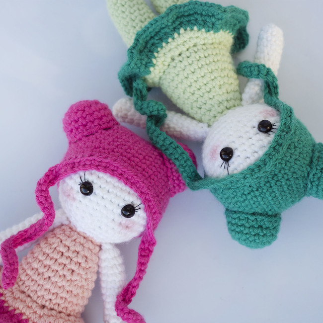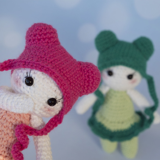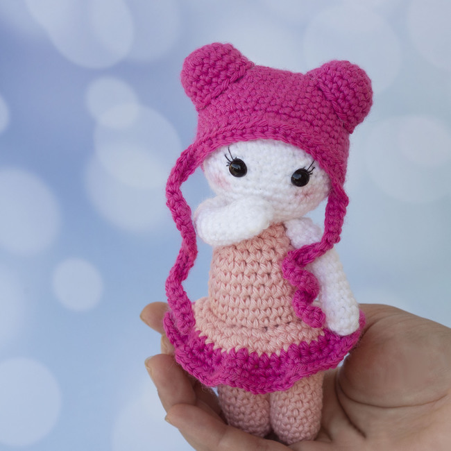 · Black sewing thread 6mm safety eyes · Synthetic cotton filling · 2.5mm crochet hooks, wool needle, and sewing needle · Pink makeup and a small brush · Pair of scissors