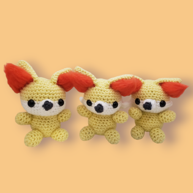 Crochet the fluffy fox Pokémon, Fennekin! Fennekin is from Pokémon X and Y. Perfect size for a small gift or a stocking stuffer!