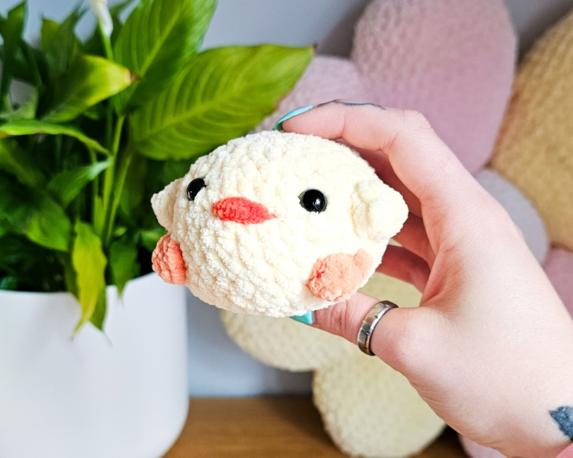 This pattern includes detailed instructions on how to make the amigurumi chick stress buddy in the listing photo. It includes a list of materials needed, a list of terminology used, and it also includes details for eye placement and assembly along with several photos to help!