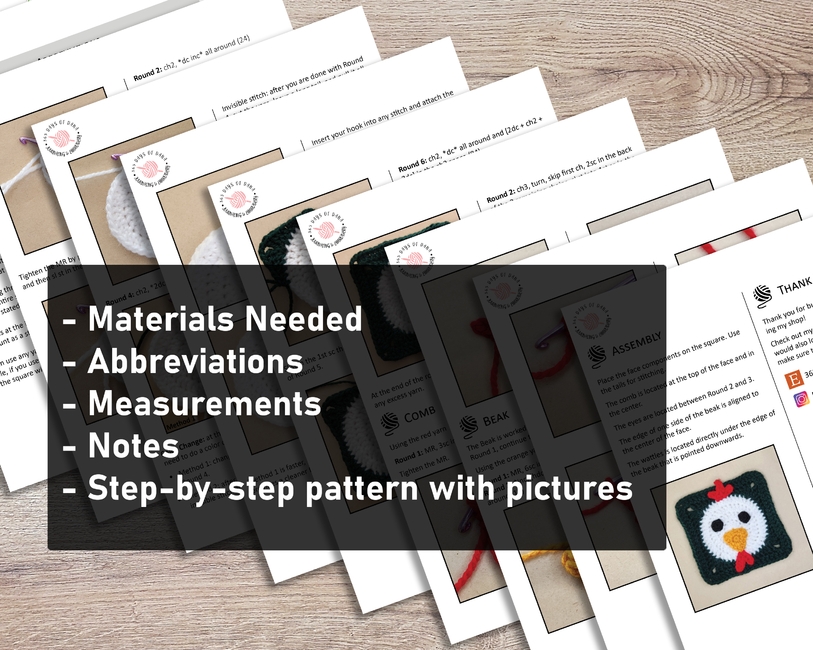 This adorable chicken granny square is great for farm-themed blankets, animal blankets, kitchen decoration, or just because!
