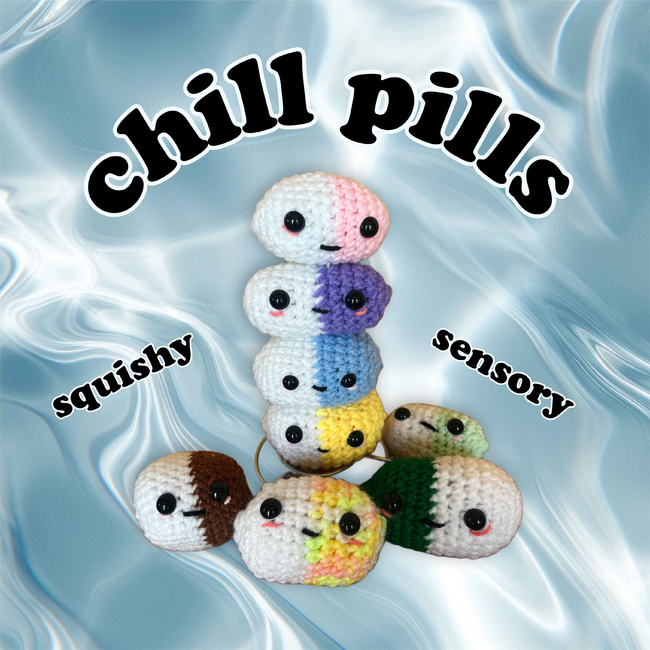 a cute lil chill pill toy! made with any color you like, these little buddies are great to display in your room, office, car or anywhere you like!