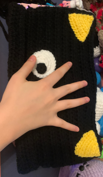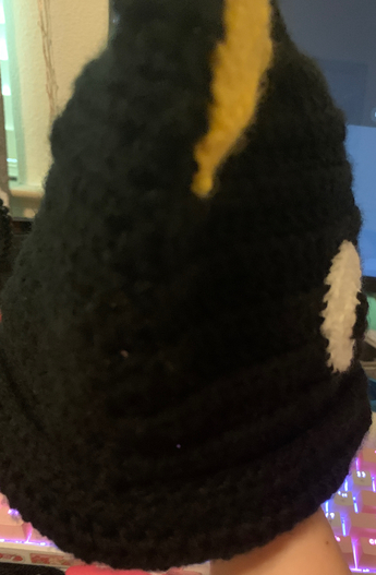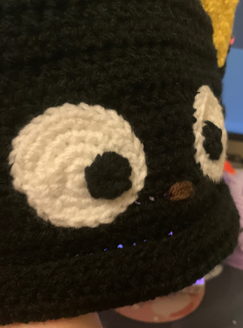 Black- main beanie/pupil color Yellow- ear color White- eye color Brown- nose embroidery