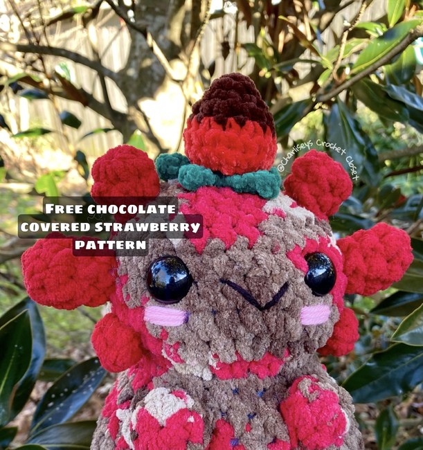 Free chocolate covered strawberry amigurumi pattern! Valentine’s day is right around the corner & what says Valentine’s day better then a chocolate covered strawberry! This little strawberry would make the perfect little present! Especially for someone who loves chocolate covered strawberry but is allergic! Or add it onto any plushie to make it more festive & yummy!