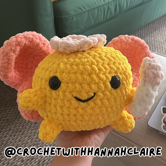 This pattern makes one chonky fairy!! This pattern involves some sewing, and some color changes and is super customizable!