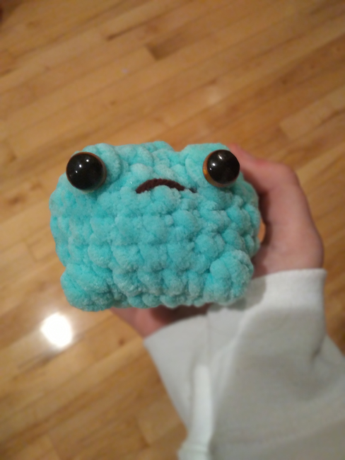 So, we have a beautiful grumpy phrog.(I don't know if I should really be calling him beautiful...) Now let's make Felicia, the fat phrog! She has similar instructions to Grumpy Phrog, but she's just as fun! Happy Crocheting!