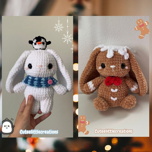 This bundle includes my Christmas bunny patterns (Cookie the gingerbread pattern and Snowy and Yuki the winter buddies)