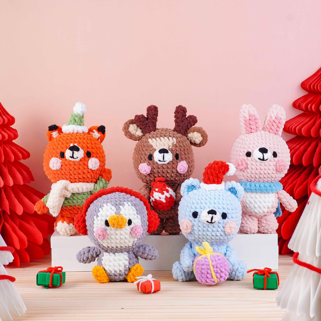 Christmas Critter Friends Crochet Patterns Bundle, Reindeer Pattern, Pinky Bunny Pattern, Penguin Pattern, Blue Bear Pattern, Fox Pattern