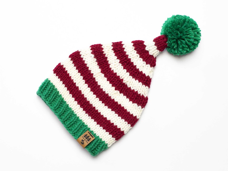 Our elf stocking cap Christmas hat knitting pattern is perfect for making handmade gifts for your loved ones, young and old.