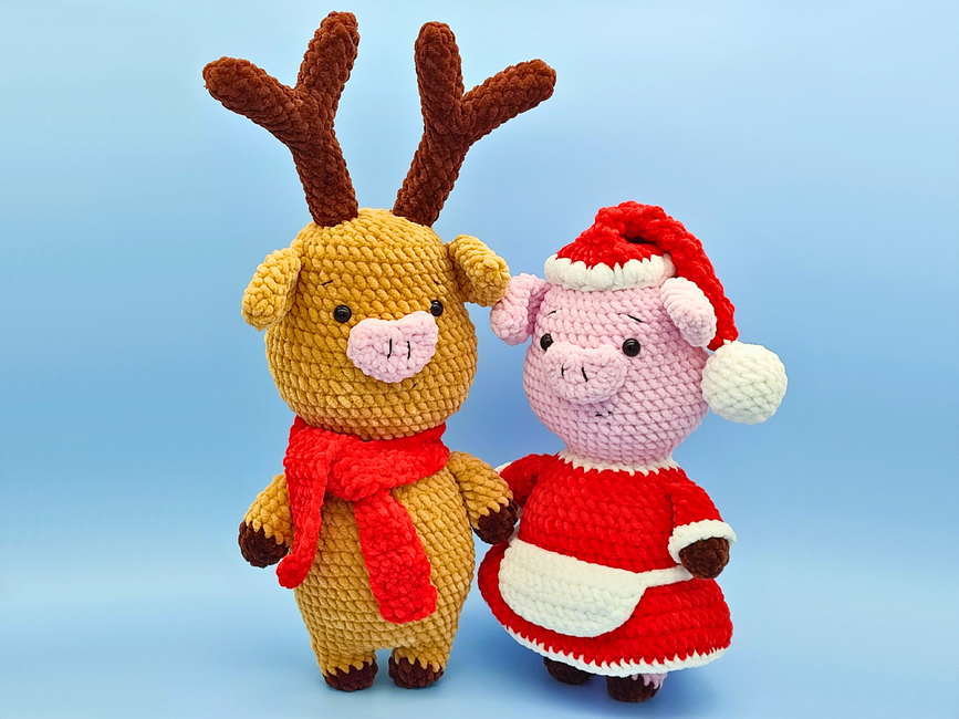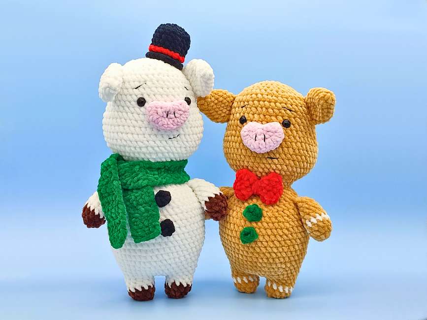 This 8-in-1 pattern bundle includes St Oinkolas the Santa Pig, Holly the Mrs Claus Pig, Jingles the Elf Pig, Jolly the Reindeer Pig, Blizzard the Snowman Pig, Tinsel the Christmas Tree Pig, Cookie the Gingerbread Pig and Halo the Angel Pig. Perfect as plush stuffed animal toys for kids or Christmas decorations, these DIY Christmas pig projects include detailed crochet instructions and photos, making them easy to follow for beginner to intermediate crocheters. The patterns are compatible with most yarn types: use lightweight cotton for a small decoration, or chunky plush yarn for a larger, cuddly finish!