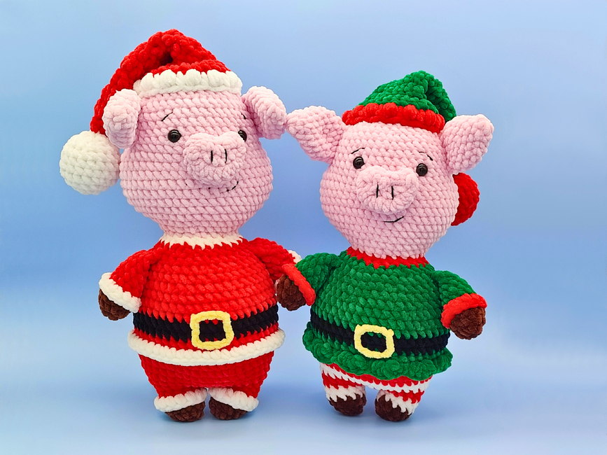 Introducing my complete Christmas Pig Bundle - interactive crochet patterns for eight low sew Amigurumi Christmas Pigs.