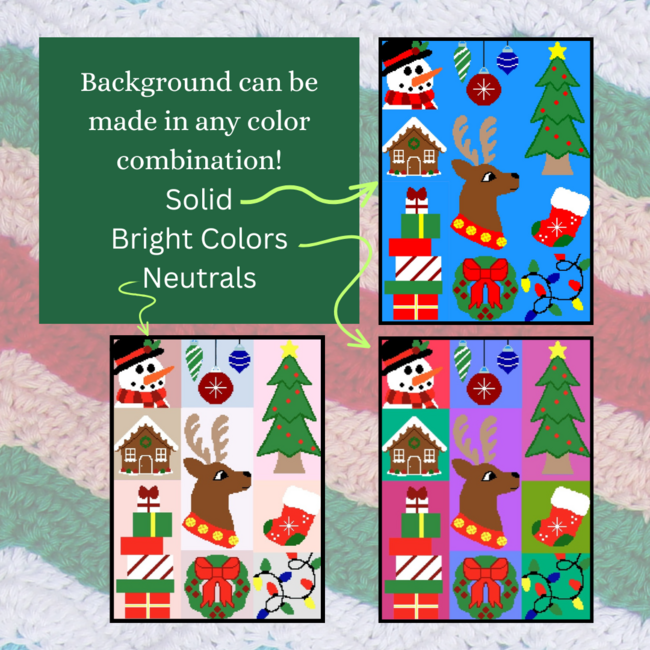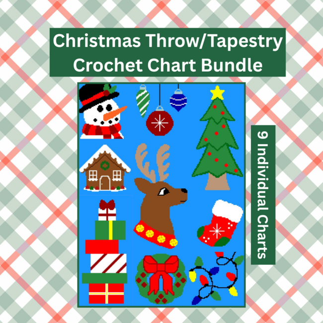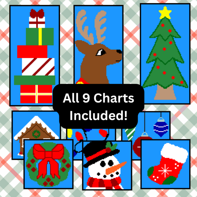 These fun and festive Christmas crochet charts are perfect for making decor for your home this holiday season. This bundle includes all 9 charts! 6 of the charts are 64 stitches wide/tall, and 3 of them are 64 stitches by 128. The charts can be used by themselves or they can be combined with any of the other charts in this group to create a variety of different projects! The pattern uses a bright color for the background so you can see the design clearly, but feel free to use any color you like to fit your decor style!