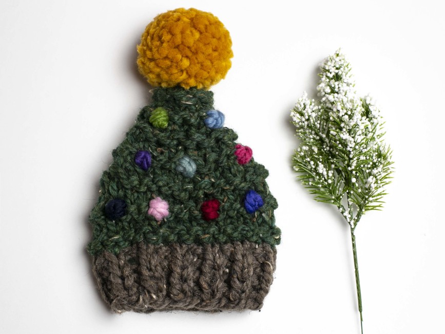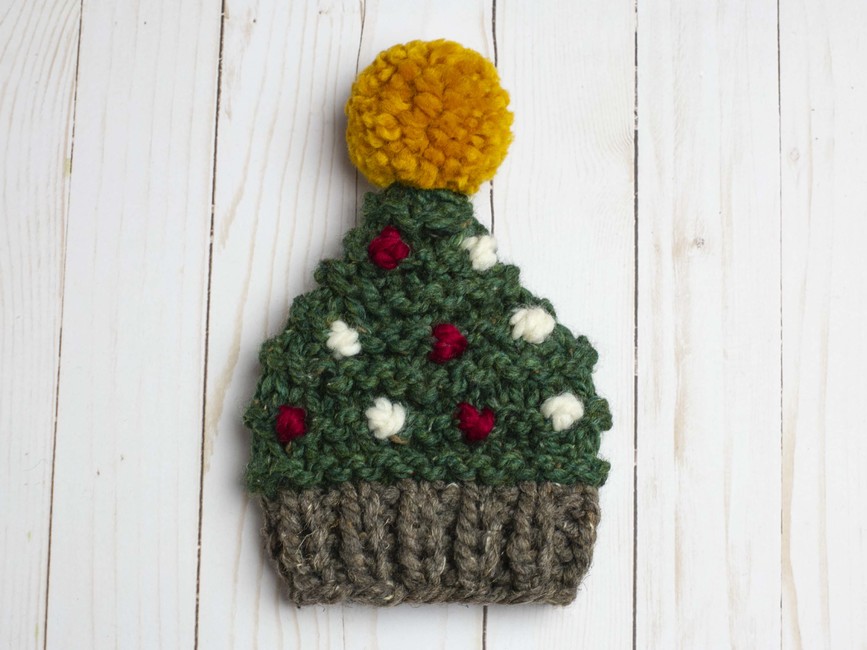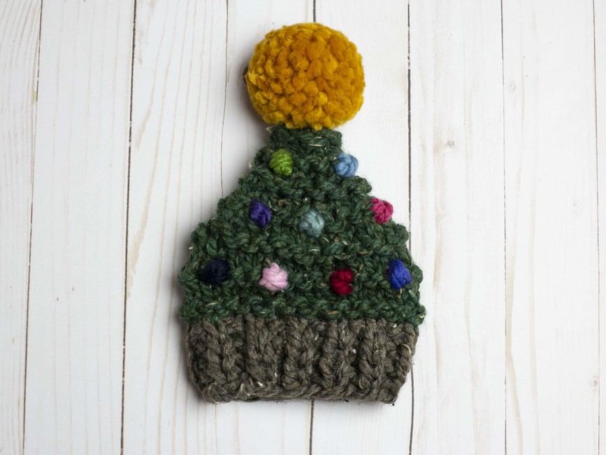 Our Christmas tree pompom hat knitting pattern is perfect for making handmade gifts for your loved ones, young and old this holiday season.