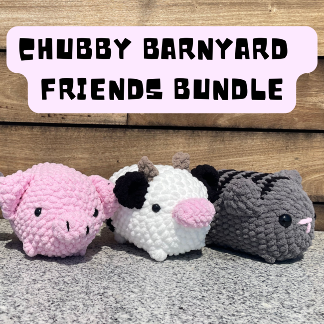 This bundle contains a pig, a cow and a cat pattern! All patterns in this bundle can be made with any size hook and yarn