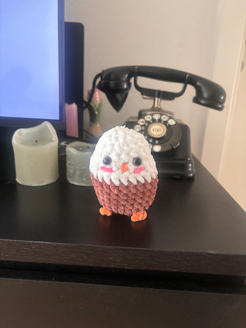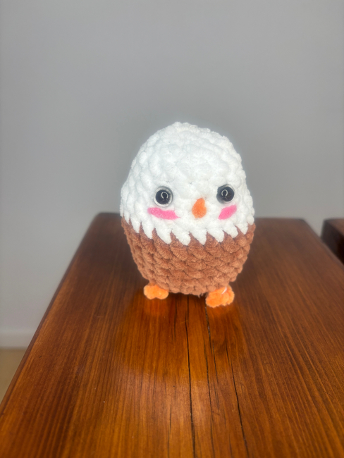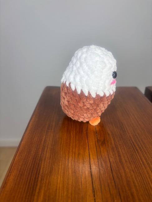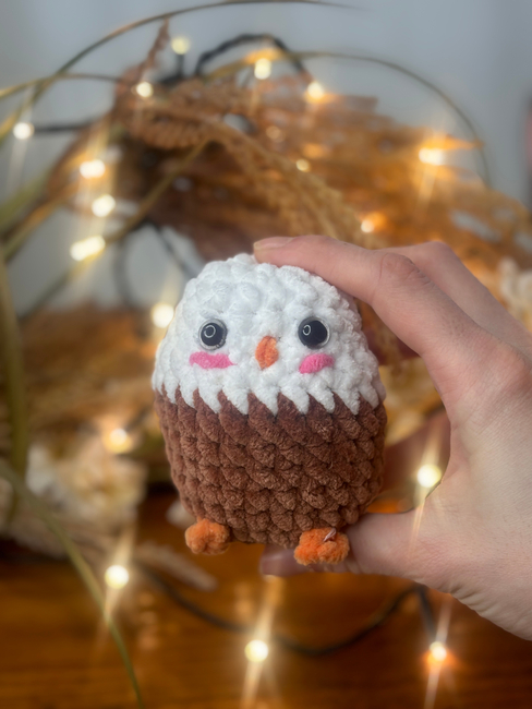 Quick & chubby no-sew eagle! Easy crochet bird pattern using plush yarn perfect patriotic decor or wildlife-inspired gift.