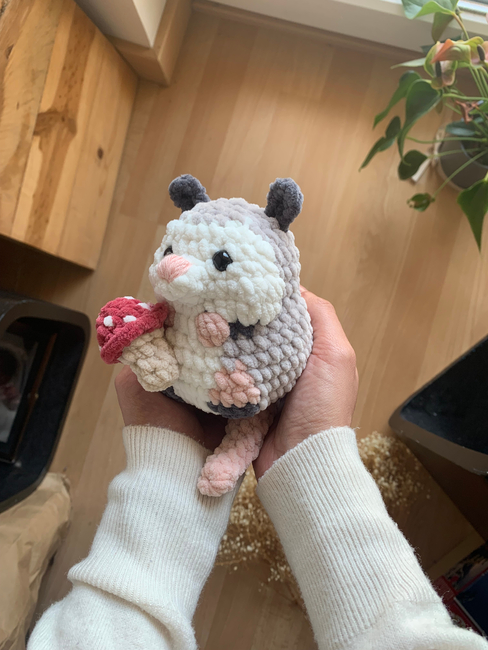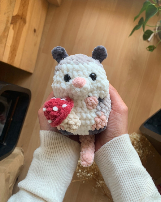 AnaCrochetStudio designed the Chubby Opossum - low sew pattern. Find more of their patterns on their Ribblr shop page.
