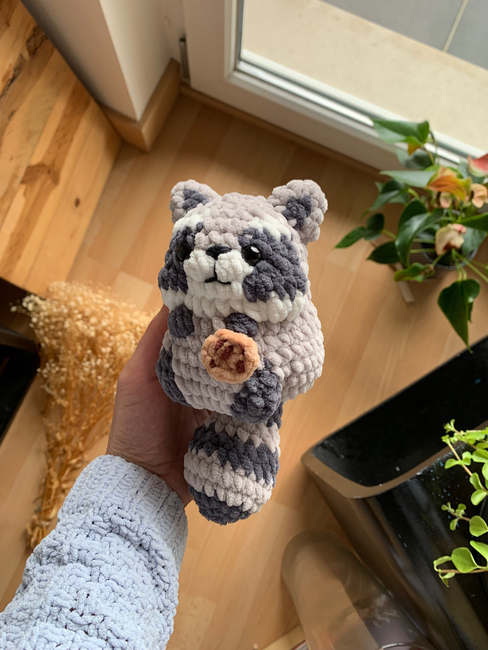 AnaCrochetStudio designed the Chubby Raccoon - low sew pattern. Find more of their patterns on their Ribblr shop page.