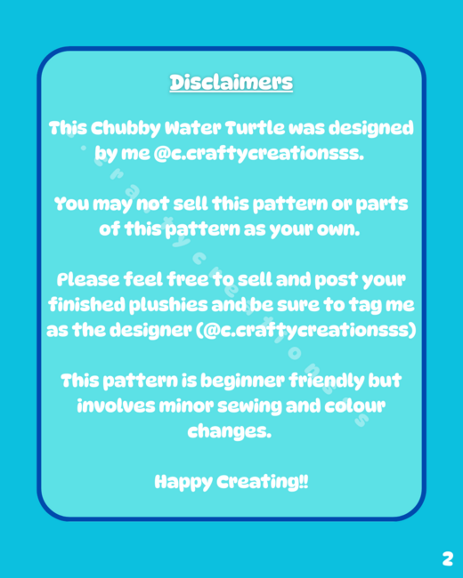 Chubby Water Turtle is a Beginner Crochet pattern designed by c.craftycreationsss for making an Amigurumi. Hello!Thank you for supporting my business!For access to the pattern, please take a look at each of the photos.If you have any questions, please send me a message to any of the following accounts:Email: c.craftycreations11@gmail.comInstagram: c.cr...