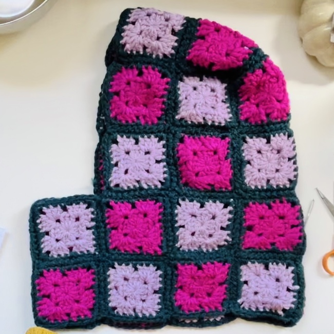 Chunky crochet balaclava with granny squares