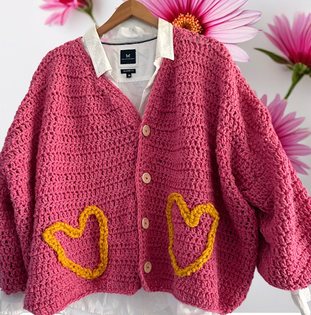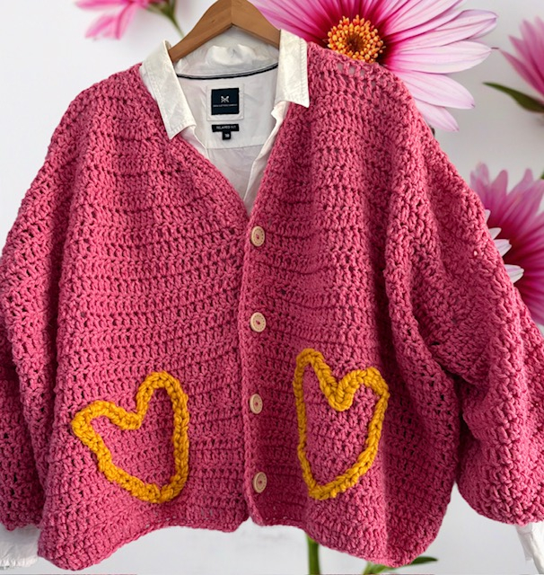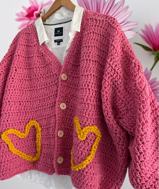 YouSayICrochet designed the Chunky Crochet Cardigan pattern. Find more of their patterns on their Ribblr shop page.