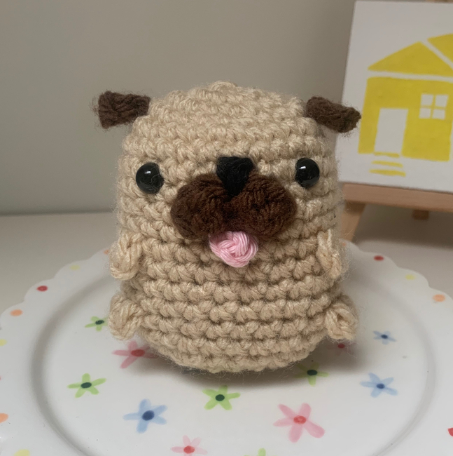 This pattern includes instructions on how to create your own chunky crochet pug. The pug is about 3.5 inches or 9 cm tall. It is perfect for all the pug lovers in your life. I used worsted weight yarn but I think you could easily use a chunkier yarn to create a bigger size pug.
