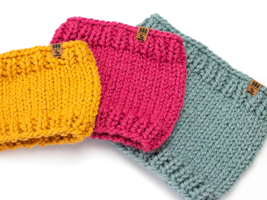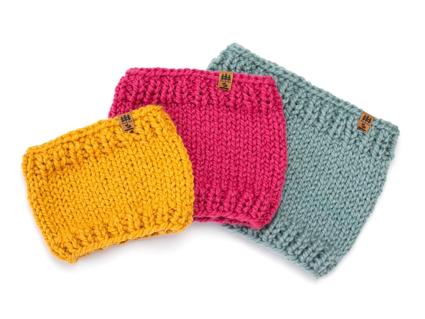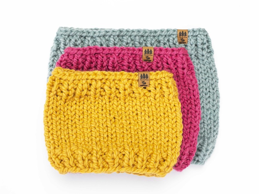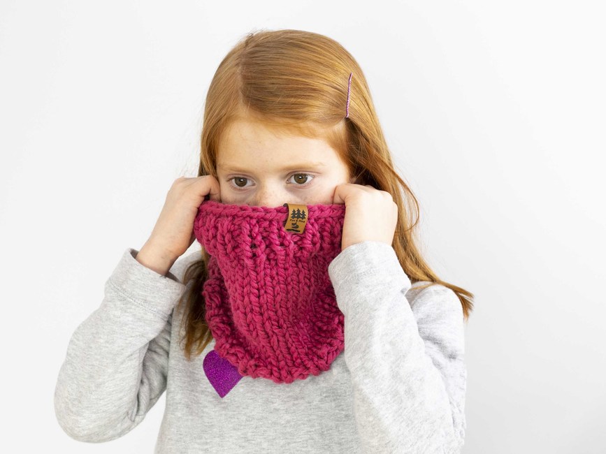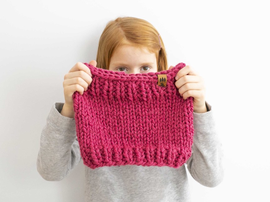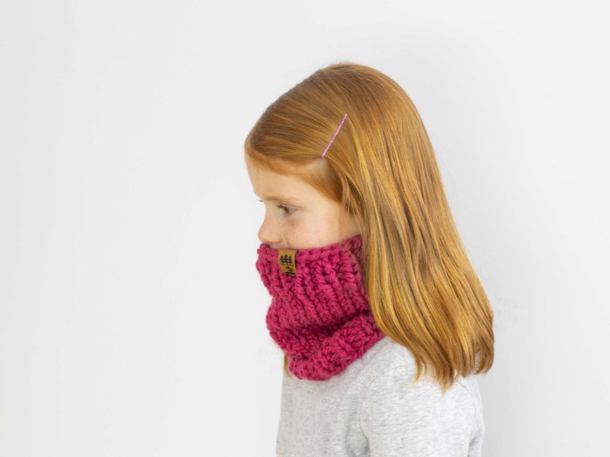 Our solid chunky cowl knitting pattern is an easy project for beginners. The cowl is worked in the round on circular needles and can be completed in an evening while catching up on your favorite show. These cowls pair great with our matching chunky toque patterns.
