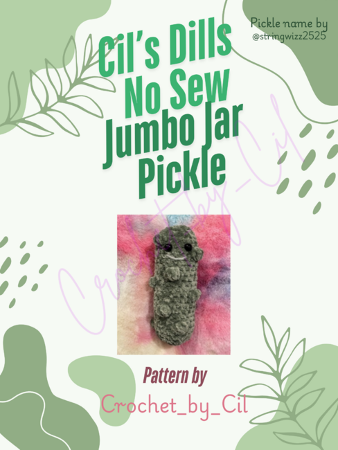 Cil's Dills No Sew Pickle Pattern is a Beginner Crochet pattern designed by Crochet by Cil for making an Accessories. This is an Advanced beginner pickle pattern. Depending on your tension, yarn and hook size used may differ from others. My original product turned out to be 7" using #6 super bulky chenille/blanket yarn. It will not have the same results if worste...