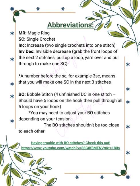 *A number before the sc, for example 3sc, means that you will make one SC in the next 3 stitches