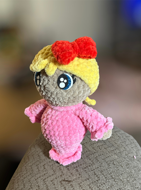 This Cindy pattern is perfect for this Holiday season! Cindy is ready for bed in her pink pajamas! This design is LOW SEW! You will need to sew the hair cap on. It is a great pattern for markets as is works up quickly!