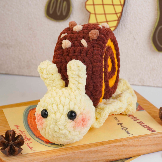 To make Cinnamon Roll Snail Crochet Pattern you will need: Color: Light yellow, yellow, dark brown, brown, beige, Stitch markerSewing needleScissorsFiberfillPlastic safety eyes (8mmx2)Pink powder. Tools required: 4.0 mm (G/6) Hook.