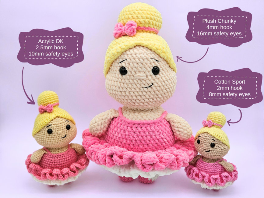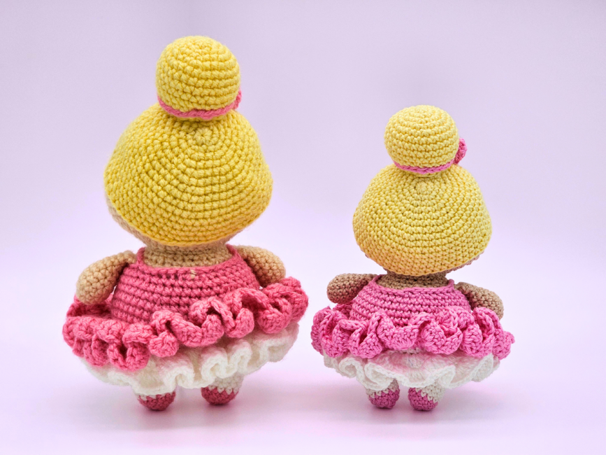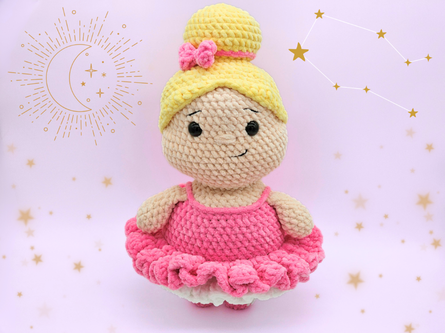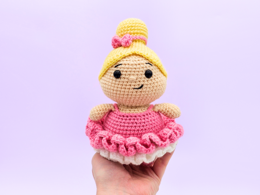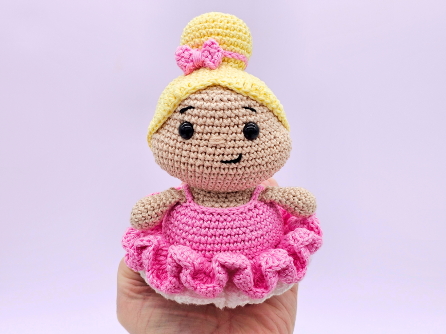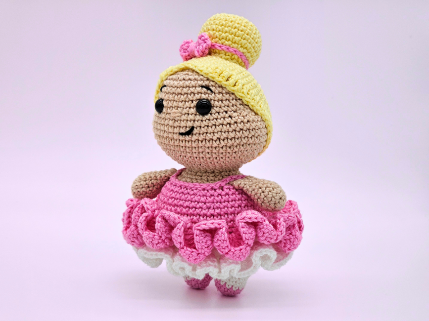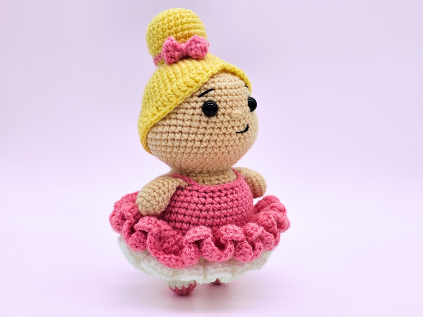Introducing my crochet ballerina - an interactive crochet pattern for a low sew amigurumi doll. The finished toy makes a perfect gift for children or dance lovers. I have provided detailed instructions and photos, making the pattern easy to follow for beginner to intermediate crocheters. You can use most yarn types - lightweight cotton creates a smaller decoration, while chunky plush yarn results in a larger, cuddly doll.