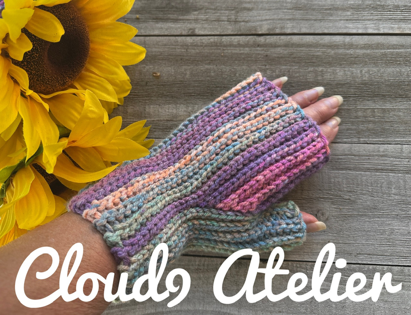 Cloud9 Atelier designed the Classic Fingerless Gloves pattern. Find more of their patterns on their Ribblr shop page.